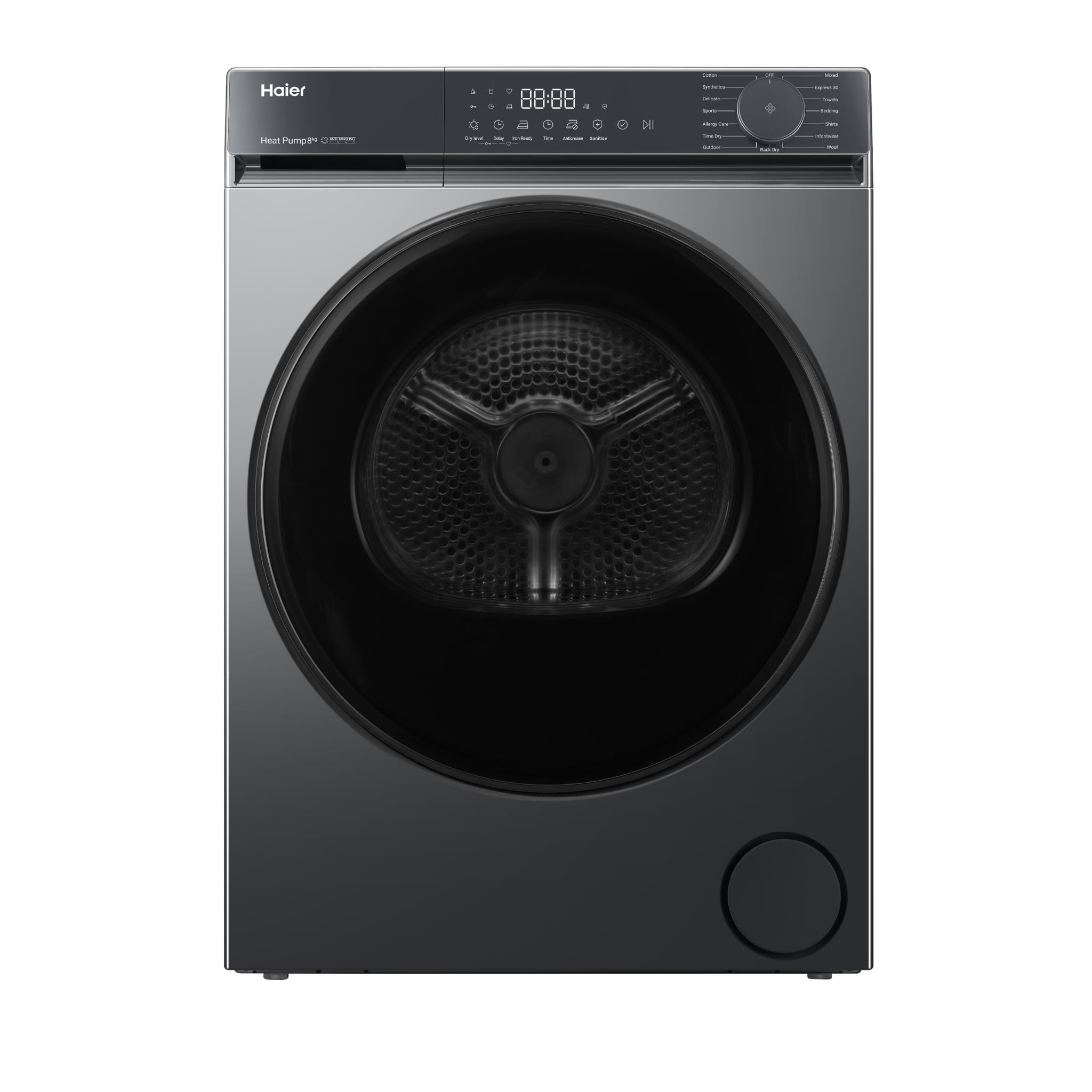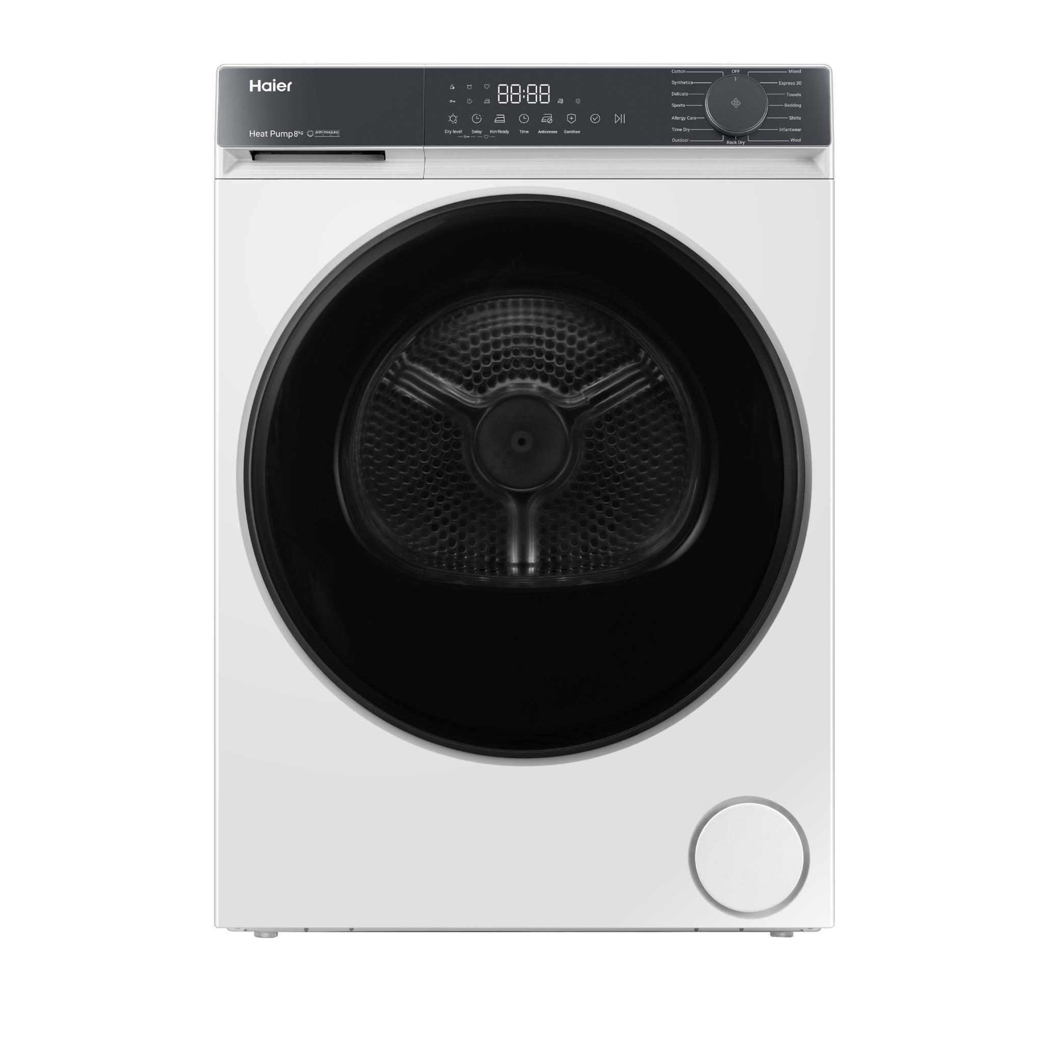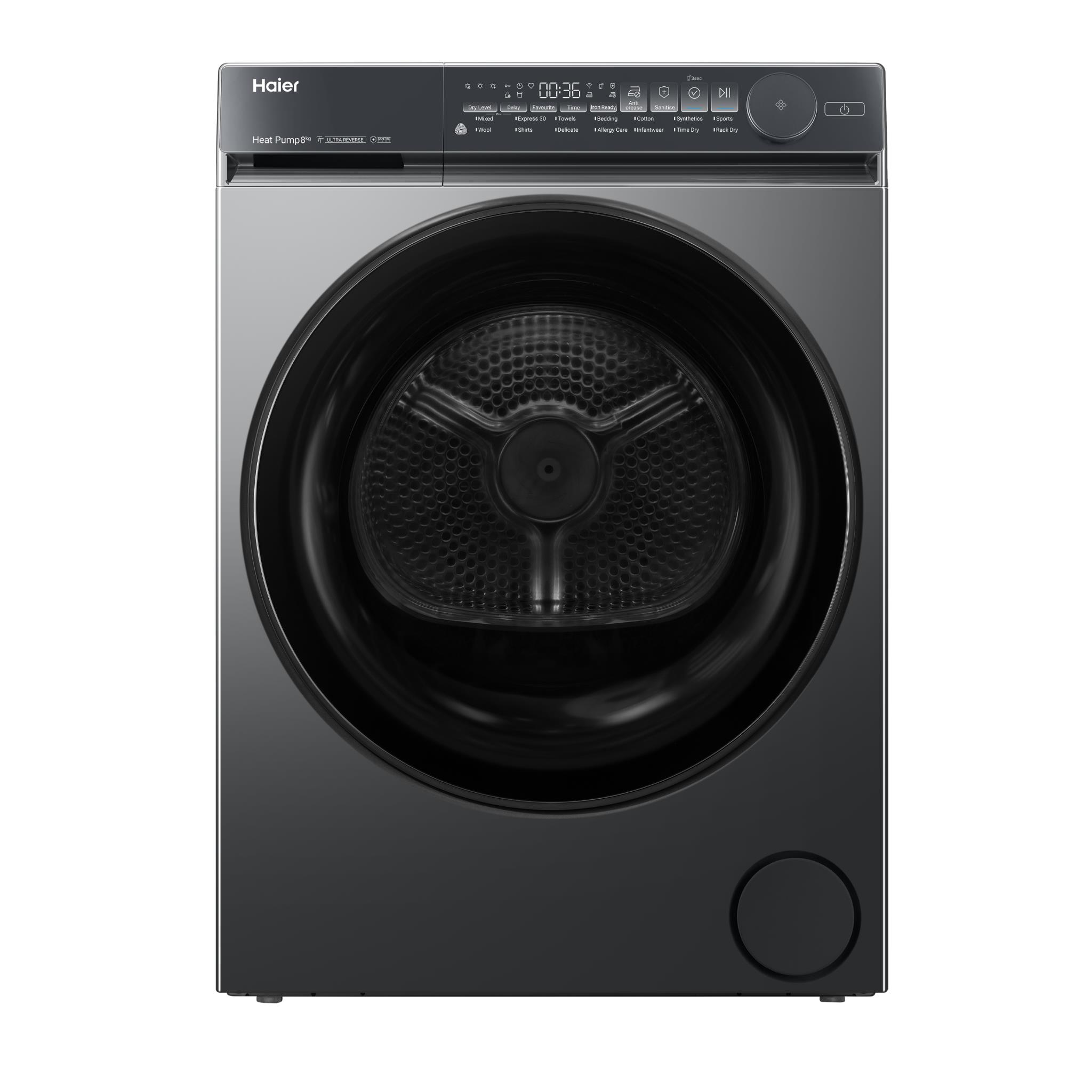Enjoy fewer tangles and more even drying with Haier’s Ultra Reverse Drum. It changes direction throughout the cycle to help stop clothes from twisting and sheets from bunching together. so every load comes out smooth and ready to wear.