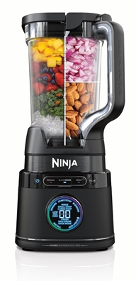The Ninja Detect™ Duo® Power Blender Pro with BlendSense™ Technology allows you to add ingredients. press the dial and watch them blend into a perfectly smooth output. This blender adjusts the power. speed and time needed to make perfect smoothies. shakes. frozen drinks and more in the 2.1L jug or 700ml to-go cups. Includes food processing modes to mince and chop veggies and salsas.